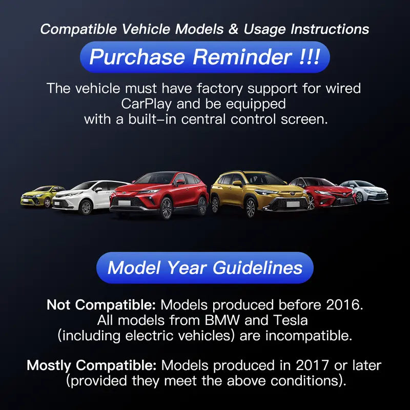 - Works only with factory-wired CarPlay; not compatible with built-in wireless CarPlay